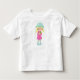 Flicka i regnrock, stövlar, groda, blondt hår t shirt