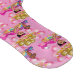 Illustration av en skön flicka som är klädd i rosa, med hår i knippen med rosa bows och princess tiara. Omringad av leksak och med rosa och guld-ballonger ovanför med stjärnor och måne. Cute-gåva för att kunna förvänta sig föräldrar, babydusch, gender eller baby födelsedagspresent.