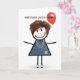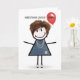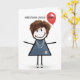 Flicka i stavfigurstil på 69-årsdag med röd ballon kort
