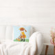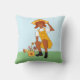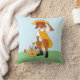 Cute Girl med Flowers Teckning Girly Pillow. En teckning av en flicka med blommor i en vattnande burk.
