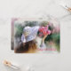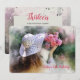 En vacker bild av en ung flicka, med ryggen vänd, som håller upp en bukett av rosa blommor. Hon har långt brunt hår och har hatt på sig. (Pix). <br/>()<br/>Kortet är enkelt att anpassa med din text, ditt teckensnitt och ditt teckensnitt färg.<br/>() Inte exakt vad du är tittar för? Alla våra produkter kan vara designad anpassningsbar för att uppfylla dina behov utan kostnad för extra.<br/>() Kontakta oss helt enkelt på askcottonlamb@gmail.com.<br/>() Tillgängliga samordningsprodukter: Fråga oss bara!