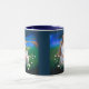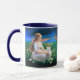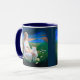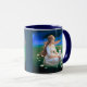 Kaffet mugg i en sereneal, eterisk scen visar en ung flicka i en vit klänning som sitter i en blomfylld ängsskugga bredvid en vit katt. Mjuk belysning och en drömmande vriden himmel förbättrar målningens romantiska, fantasiliknande atmosfär. Flickans blickar och porträtt förmedlar en varsam själviskhet.