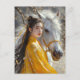 En lugn konstverk av en ung flicka som håller en liten häst under körsbärsblom, som representerar det kinesiska stjärntecknet Hästen. Perfekt för kulturella eller stjärntecken-tematiska samlingar.