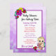 Flicka med Nalle Lila Baby Shower Inbjudningar
