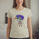 Söt liten flicka med paraply, iklädd en snygg t-shirt idealisk för spädbarn, som fångar hjärtan överallt.