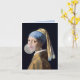 Flicka med pärlörring som blåser en bubbelgummi kort