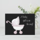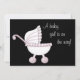 Inbjudan till rosa och svart flicka baby shower med en rosa och vit spetsig kant baby stroller.
