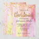 Så trendigt, denna inbjudan har en rosa vattenfärgsbakgrund och falska guldbokstäver och konfetti som faller i bakgrunden.