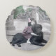 Flicka och hennes hund rund kudde