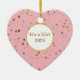 Den kärleksfulla hjärtformen visas här i rosa med gyllene stjärnor och uttrycket "Det är en flicka". Anpassa det här objektet eller köp som det är.