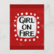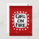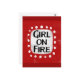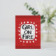 "Flicka på eld" är en rolig textdesign med en vit accentform omgiven av vita fantasifulla texturerade prickar.