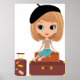 En tjej på helgdag i sitta på lite bagage. Den här designen ser ut att vara verkligen på dessa Poster