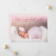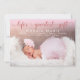 Här är ett modernt skrivskyddat fotokort som hjälper dig att med världen ditt mest glatta meddelande, kallat "livets underbarare gåva", ditt barns födelse. På kortets framsida finns ett foto från ram och plats för baby namn och födelseinformation, tillsammans med föräldrarnas namn. Kortets baksida är täckt med ett sött rosa bows mönster. Om du har en designfråga eller vill se den här designen på en annan produkt kan du kontakta mig på jschmidtdesignworks@gmail.com.
