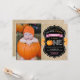 Flicka Pumpa Första Födelsedagsinbjudan med anpassad bild, orange och rosa, kritskrifts- och burlapbakgrund. För ytterligare anpassning, klicka på "Anpassa"-knappen och använd vårt designverktyg för att ändra denna mall.