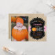 Flicka Pumpa Första Födelsedagsinbjudan med anpassad bild, orange och rosa, svart tavla och burlap bakgrund. För ytterligare anpassning, klicka på "Anpassa" knappen och använd vårt designverktyg för att ändra denna mall.