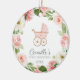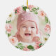 Flicka Rosa Blommigt Första julfoto Julgransprydnad Keramik