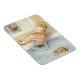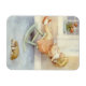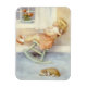 Den ynkliga lilla blonda flickan sitta i hennes grönt rockar i sin favoritdocka i baby. Hennes lilla bruna valp sover vid golv bredvid henne. Konstverk av Bessie Pease Gutmann.