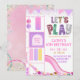 Flicka Rosa Lila Glitter Låt oss le Inomhus Lekpla Inbjudningar