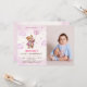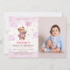 Flicka Rosa Teddybjörn Ballonger Första Födelsedag Inbjudningar