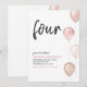 Flicka Rosé Födelsedagsballonger Enkel 4-årsdag Inbjudningar