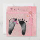 Par av nyfödda fotavtryck på rosans bakgrund.