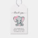 Tack märkre för flicka-duschfavörer med "tack" och "En söt liten jordnöt är på väg" skriven i en blandning av mjuk grått-typografi och ett snyggt-skript, och en pastellfärgad rosa av en elefant från baby. Anpassa mor till namn och duschdatum i enkel grått-typografi.