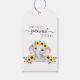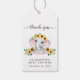 Tack märkre för flicka-duschfavörer med "tack" och "En söt liten jordnöt är på väg" skriven i en blandning av mjuk grått-typografi och ett snyggt-manus, och en pastellfärgad rosa av en elefant från baby som är adorerad i solblommor. Anpassa mor till namn och duschdatum i enkel grått-typografi.