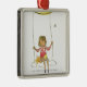 Flicka som svänger på ett rep som hänger från den julgransprydnad metall