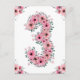 Vacker Tredje Födelsedag stor siffra tre dekorerad med vackra akvarell rosa blommor och grönt lövverk. Barnets 3-årspresent till din lilla flicka för ett unikt och mycket speciellt vykort.