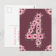 Vacker fjärde födelsedag stor siffra fyra dekorerad med vackra akvarell rosa blommor och grönt lövverk. Jättebra 4-årspresent till din lilla flicka för ett unikt och mycket speciellt vykort.