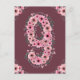 Vacker nionde födelsedag stor siffra nio dekorerad med vackra akvarell rosafärgade blommor och grönt lövverk. Underbart 9-års presentkort till din lilla flicka för ett unikt och mycket speciellt vykort.