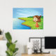 Ge en glad och lekfull touch till ditt utrymme med denna söta tecknade flicka vid floddesign. Med ljusa färger, en fridfull naturmiljö och en charmig karaktär är detta konstverk perfekt för barnrum, barnkammare, klassrum eller någon som älskar roliga illustrerade landskap. Idealiskt som en statement-väggdel, lägger denna affisch till värme, fantasi och en lättsam stämning till din inredning.