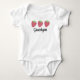 Björndräkten flicka har en trio vattenfärgade jordgubbar. Anpassa med ditt barns namn eller en roligt. Den här designen visas bäst med vita och levande utskriftsalternativ.