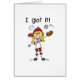 Stick figurflickabasebollspelaren i ett röd enhetligt och baseballmössa fångar bollen i henne handsken, och text läser "mig fick den!". Om du älskar baseball och stick figur, ska du kärlek som detta gulligt planlägger!