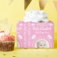Det är en flicka! Tillfoga lätt din bebis foto, namn och födelsedatum till denna nätt rosa gåvasjal. Gulligt mönster av blommor och kaninkaniner.