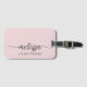 Feminint minimalist enkelt rent rosa monogram namn signatur skript anpassad personlig bagagetagg. Denna design med förnamn i en vacker handskriven svans kalligrafi teckensnitt signatur (eller typografi) och fullständigt namn på dammigt rosa eller ljus pastell rosa bakgrund. Dessa är lätta att anpassa. Stilsäkert feminint present för bröllop, bröllopsdusch, 16-årsdag, examen och för alla som älskar glamourös stil.