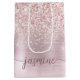 Flickaktig Glam Rosa Guld Glitter Metallisk Monogram Namn Signatur Skript Anpassad Personlig Presentpåse. Denna design med ditt förnamn i en snygg handstils swash-svans font signatur typografi (eller kalligrafi) på rosa rosa guld falsk metallisk folie med glam glitter glitterkant. Dessa är lätta att anpassa. Denna feminina presentpåse är bra som husvärmningspresent, även för födelsedag, mors dag, bröllop, sweet 16 födelsedagsfest, bröllopsfest, baby shower, för examensfestpresent och den är för flickan som älskar unika glittrande stiliga saker.