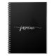 Modern, Enkel, Svart Monogramnamn Feminint Namn Skript Spiralanteckningsbok. Denna minimalistiska enfärgade design med ditt förnamn i en snygg handskriven svansfont typografi vit skrift på svart bakgrund och enkel att anpassa dem. Jättebra anpassat personligt flickaktigt present för Födelsedagsfest, SÖTA 16 Födelsedagsfest, Bröllop, Brudshow, BABY shower och för alla som älskar snygg minimalistisk stil.