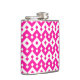 En mycket söt vinylinslagen Hip-kolv, med mönster av dekorativa chevronformer i rosa och vitt. En del av "Candy Floss"-samlingen Posh & Painterly.