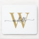 Flickaktig Elegant Vit och Guld Enkel Minimalistisk Monogram Initial Namn Signatur Skript Anpassad Personlig musmatta. Denna enkla minimalistiska enfärgade design med ditt förnamn i en snygg handskriven svansfont typografi (eller kalligrafi), monogram initial i guld och svart på vit bakgrund. Dessa är lätta att anpassa. Jätte snyggt feminint present för födelsedag, bröllopsdusch, mors dag, sweet 16 födelsedag och Det är för tjejen som älskar unika minimala stiliga saker.