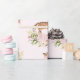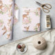 Themed slående in papper för kvinnlig skogsmark som presenterar pastellfärgade rosa- & rodnadvattenfärgpioner, och illustration av en förtjusande bebishjort
