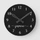 Flickigt enkel minimalistisk svart monogramnamn skript Anpassad personlig rund klocka. Dessa mönster har ditt förnamn i en snygg handskriven stilisert svans typsnitts typografi vit text på svart bakgrund. Dessa är lätta att anpassa. Snygg och stilren feminin husvärmegåva, även till födelsedag, mors dag, bröllop, brudshow, 16-årsfest och baby shower, studenten och den är för flickan som älskar unika och stilrena saker med lyster.