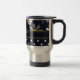 En travel mug med ett flickaktigt retro modblommamönster på det bästa med vitdaisy med gult centrerar mot en marinblå bakgrund, och en moderiktig blått- och vitpolka pricker mönster på grunden. Personifiera, genom att tillfoga ditt namn. Göra perfekt gåva för en flicka för snyggt flickaktigt.