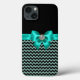 Flickaktigt bugar smartphonefodral för iPhone 6 med den glitzy simulerade rhinestonejuveln, turkosglitter och turkosfärgaden, alla som skrivs digitalt ut på täcka som är designad för damer eller flickor. Bär din mobiltelefon i en så unik stil, som du är.