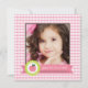 Älskvärd flickaktigt inbjudan för din princess. Den presenterar en sötsak lätt - rosa- och vitginghambakgrund och ett ställe för att upload din dotters foto. Det huvudsakligt specificerar är en skriftlig rosa etikett "dig är inbjudet" i vit och illustrationen av ett rosa kawaiiäpple på en limefruktgröntmärkre. Skriv in informationen om partyet på baksidaen. Kontrollera ut andra produkter av detta tema: