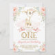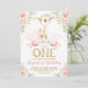 Denna förtjusande illustration för kvinnliga 1st födelsedaginbjudansärdrag av en söt bebishjort som omges av rodna rosa vattenfärgblommor och fauxguldkonfettiar. Om du önskar att ändra stilsortsstilen, klickar färger eller textplaceringen enkelt "klickar för att skräddarsy vidare" knäppas.