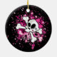 Flickaktigtens skalle och korsben med båge omges av en explosion av rosa med hjärtan och stjärnor.