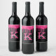 Flickaktigt svart het rosa glitterdroppad initial vinflaska etikett