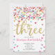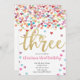 Flickan 3:e födelsedagen Hearts Confetti Rainbow G Inbjudningar