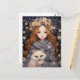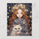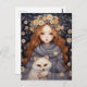 Den här söta illustrationen skildrar en liten flicka som kuddar en röd räv. De omges av blommor som påminner om folkkonst, och barnet har själv en blommigt krona, ge detta vackra kort en magisk, sagbar känsla. Detta vykort är perfekt för alla som kärlek djur, natur eller vismliknande illustrationer!